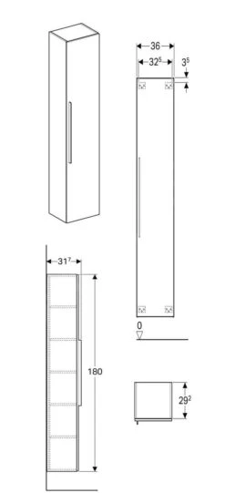 Geberit ONE – Hoge Kast 180x36x29 Cm, 1 Deur, Scharnieren L/R, Eikenhout 505.083.00.5