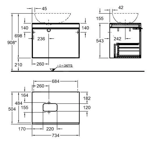 - afmetingen kastje: 73,4 x 54,3 x 50,4 cm (bxhxd)