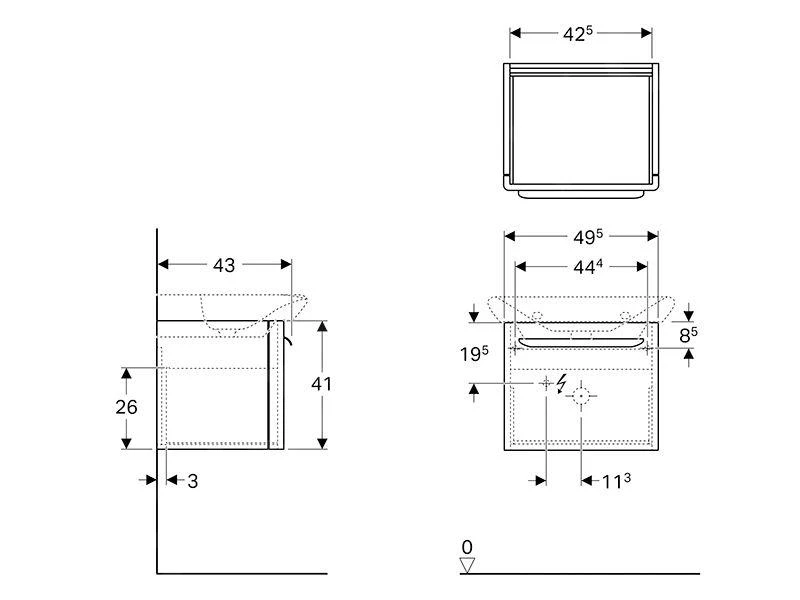 - voor wastafel met een breedte van 600 mm