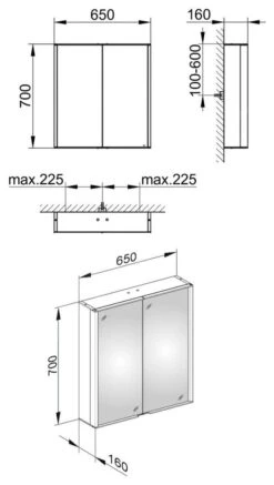 Keuco Royal Match – Spiegelkast Met LED-verlichting, 650x700x160 Mm, Zilver Geanodiseerd 12801171311