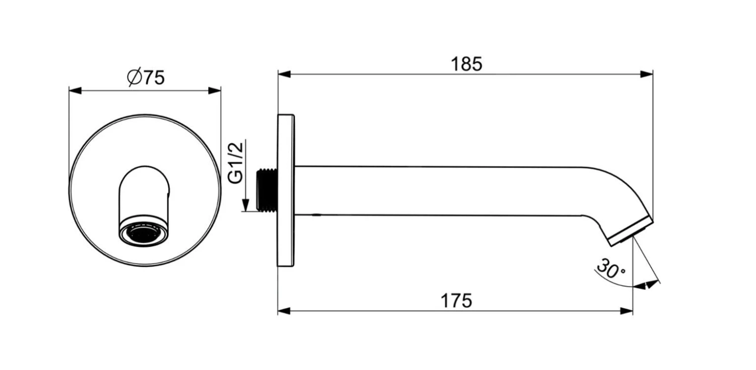- lengte uitloop: 175 mm