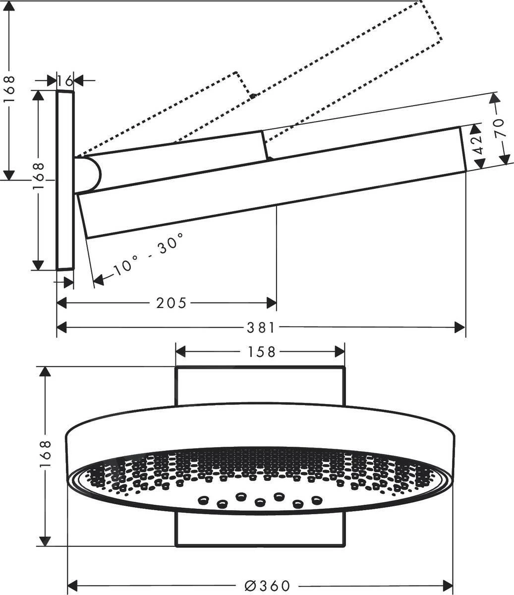 - de douchekop kan 10-30° verticaal worden gekanteld