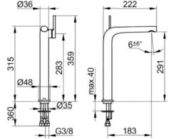 - cartouche Ø 47 mm met keramische schijven, met heetwaterbegrenzer
