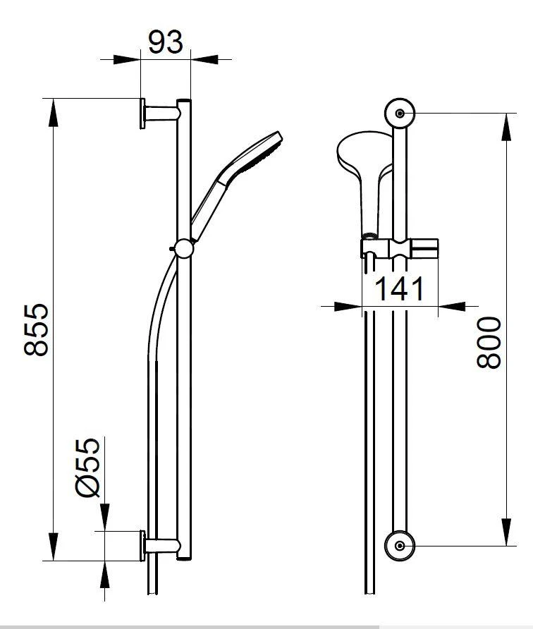 - lengte douchestang: 855 mm