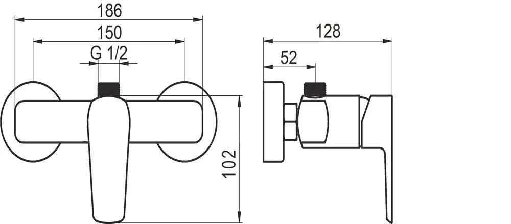 Eengreeps douchekraan, zonder doucheaccessoires
