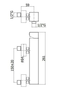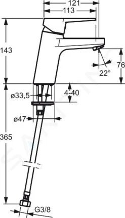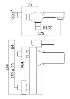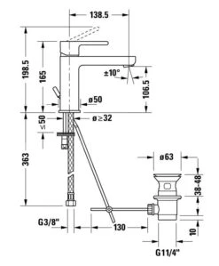 - hartafstand wateraansluiting: 150 mm