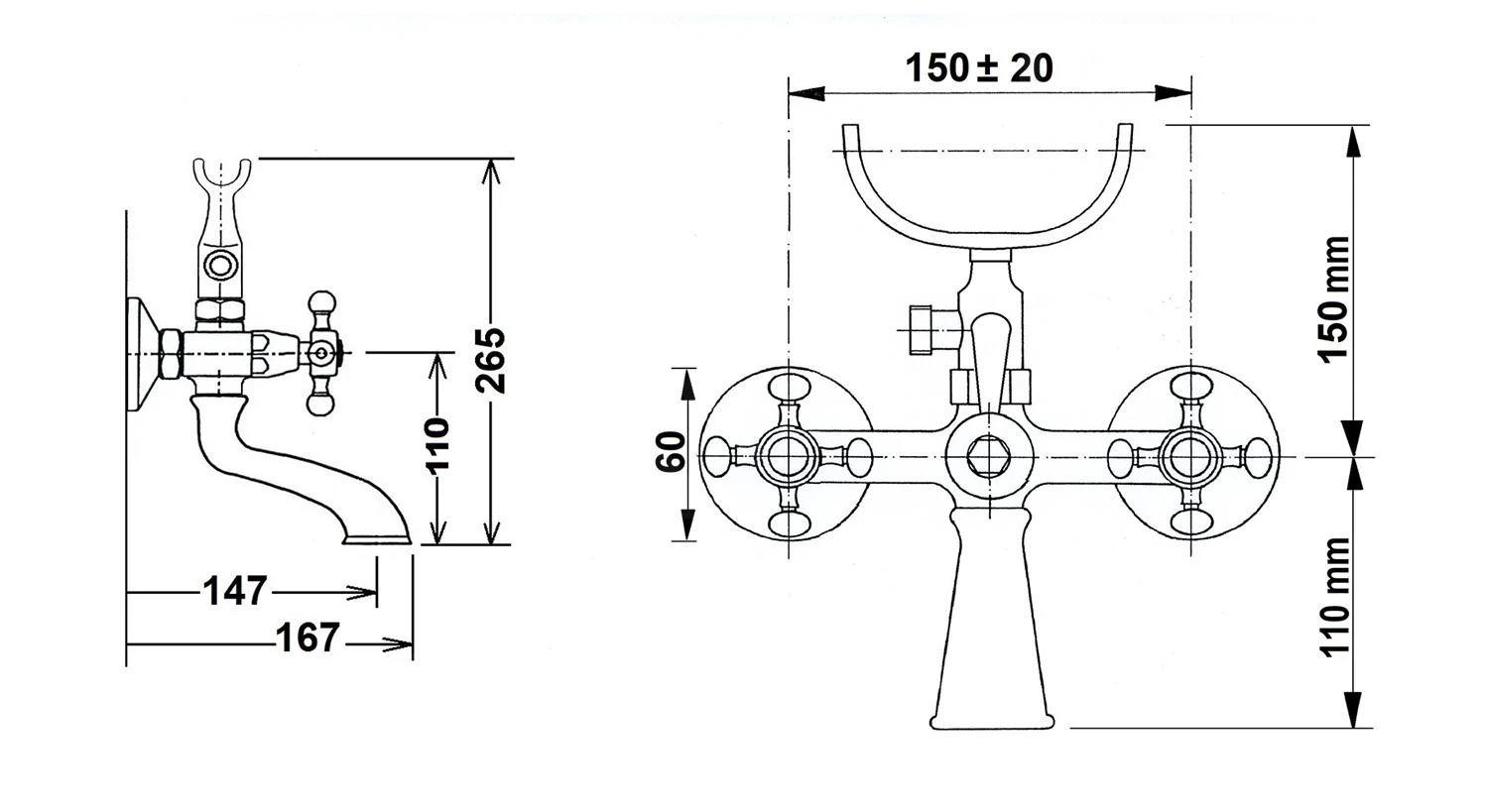 - hartafstand wateraansluiting 150 mm