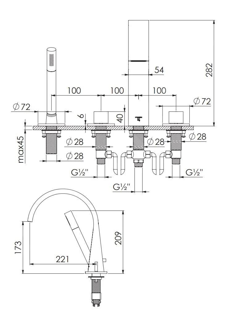 - kraanhoogte 282 mm